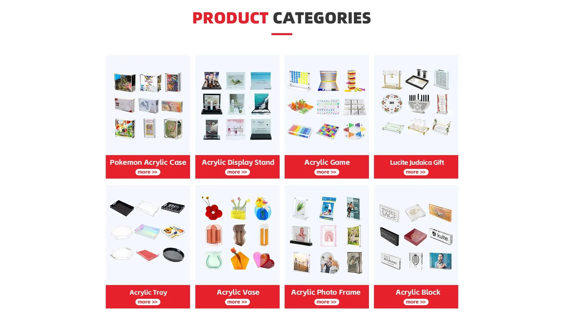 Основные продукты:Акриловая игра, акриловый лоток, акриловая коробка, акриловый блок, акриловая подставка для дисплея